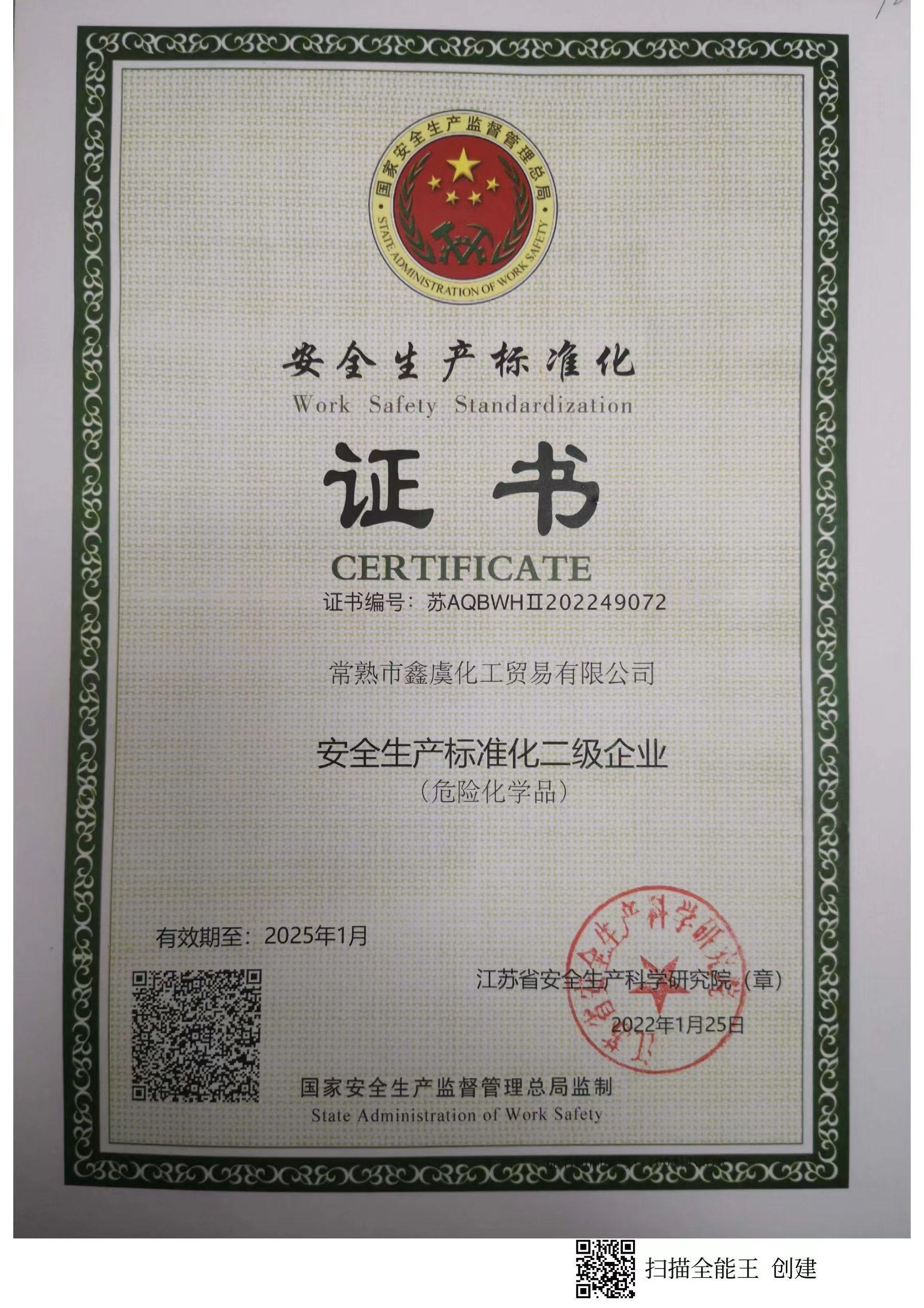 二级标准化证书